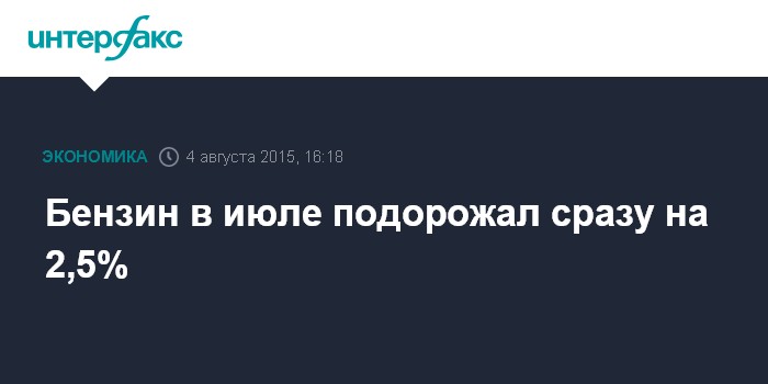 В целом за январь-июль 2015 года бензин в России подорожал на 2,7%.
