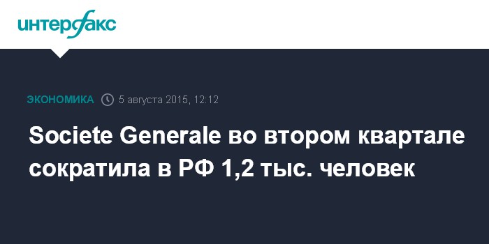 Москва. 5 августа. INTERFAX.RU – Французская группа Societe Generale во втором квартале 2015 года сократила в России 1,2 тыс. сотрудников, говорится в материалах группы.