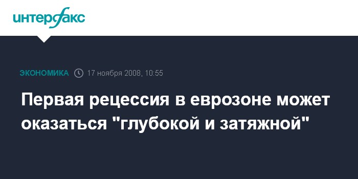 Еврозона переживает первую рецессию со времени введения единой европейской валюты в 1999 году, и, как утверждают эксперты Bank of America Corp., Deutsche Bank AG и Citigroup Inc., негативные тенденции в экономике региона сохранятся в течение ближайших кварталов. Восстановление и рост не вернутся до последних месяцев 2009 года.