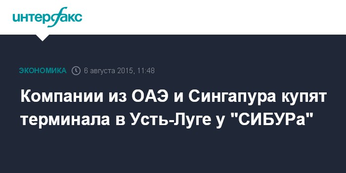 Москва. 6 августа. INTERFAX.RU – Компания из Объединенных Арабских Эмиратов Thirty Seventh Investment Company и сингапурская Baltic Sea Transhipment Pte. Ltd. станут покупателями терминала в Усть-Луге у "СИБУРа"
