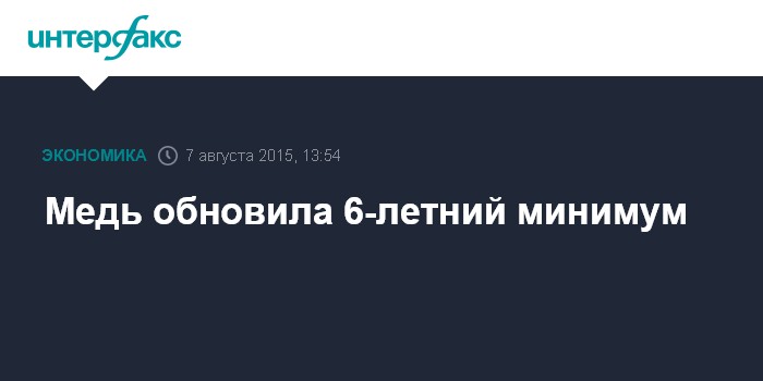 Москва. 7 августа. INTERFAX.RU - Цены на медь обновили минимум за 6 лет на торгах в Лондоне, тогда как алюминий завершает снижением котировок пятую неделю подряд, сообщает агентство Bloomberg.