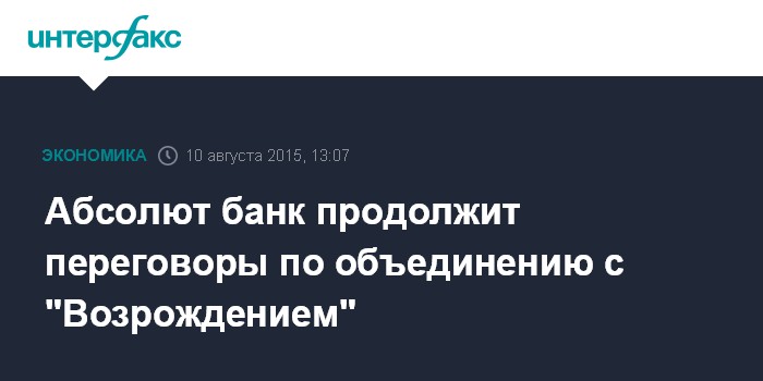Абсолют банк продолжит переговоры по объединению с "Возрождением"