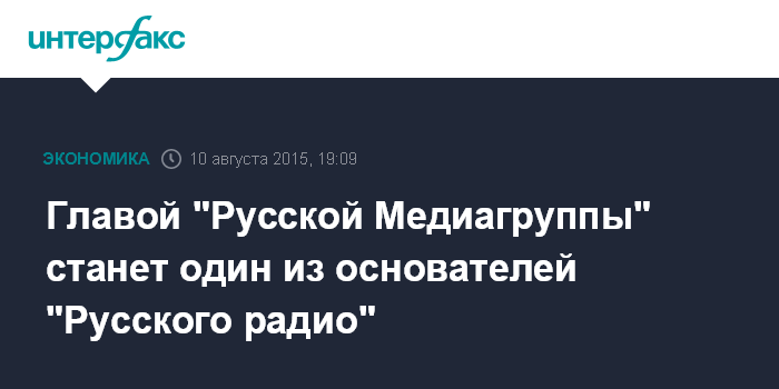 Главой "Русской Медиагруппы" станет один из основателей "Русского радио"