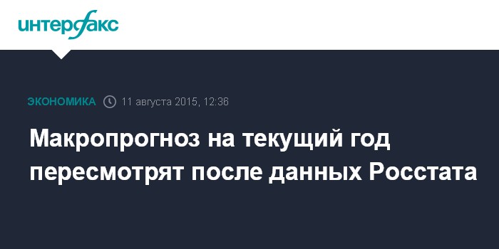 Москва. 11 августа. INTERFAX.RU – Макропрогноз на 2015 год в части спада ВВП РФ может быть пересмотрен после данных Росстата за второй квартал, которые оказались несколько хуже ожидаемых.