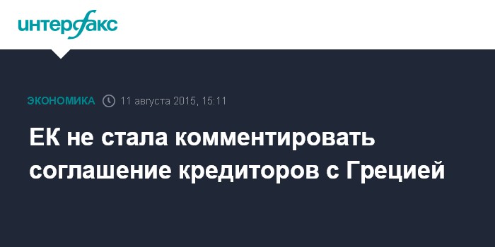 ЕК не стала комментировать соглашение кредиторов с Грецией