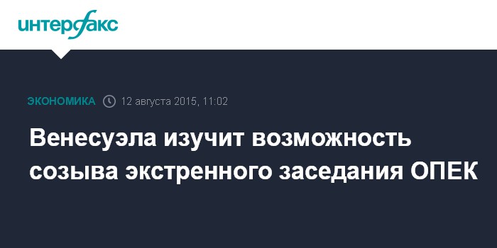 Москва. 12 августа. INTERFAX.RU – Венесуэла может созвать экстренное заседание Организации стран-экспортеров нефти в условиях резкого падения цен на нефть, сообщает агентство Bloomberg.
