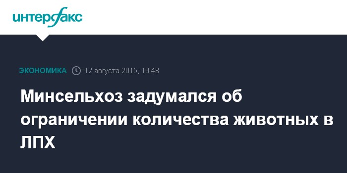 Москва. 12 августа. INTERFAX.RU - В Минсельхозе считают, что количество животных в личных подсобных хозяйствах граждан должно зависеть от размеров земельных участков владельцев этих хозяйств.