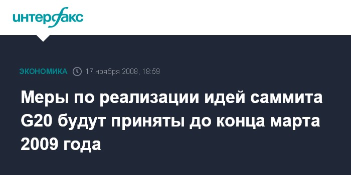 Меры по реализации идей саммита G20 будут приняты до конца марта 2009 года