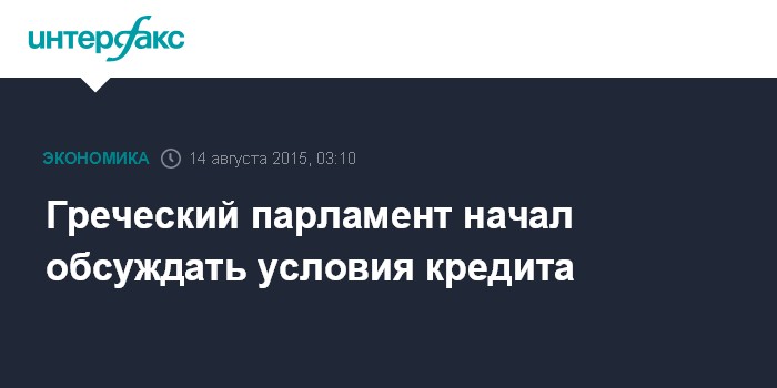 Москва. 14 августа. INTERFAX.RU - В Греции началось заседание парламента страны, который должен проголосовать по условиям предоставления нового кредита, сообщает в пятницу BBC News.