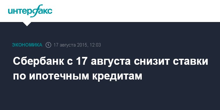 Сбербанк с 17 августа снизит ставки по ипотечным кредитам