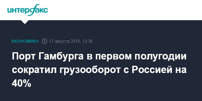 Москва. 17 августа. INTERFAX.RU – Порт Гамбурга сообщил, что в первом полугодии объем контейнерных перевозок из и в российские порты на Балтике сократился почти на 40% относительно аналогичного периода прошлого года.