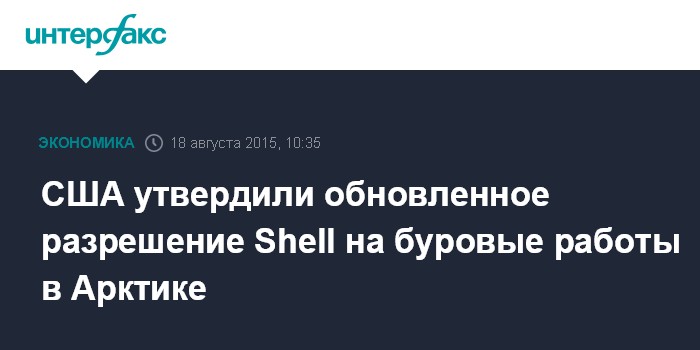 Москва. 18 августа. INTERFAX.RU – Власти США в понедельник утвердили обновленную лицензию англо-голландской нефтяной компании Royal Dutch Shell на геологоразведочное бурение в Арктике, что позволит компании продолжить работы в регионе.