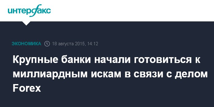 Москва. 18 августа. INTERFAX.RU – Крупные международные банки готовятся к искам в Лондоне и Азии в общей сложности на миллиарды долларов в связи с обвинениями в манипулировании валютными курсами, пишет Financial Times.