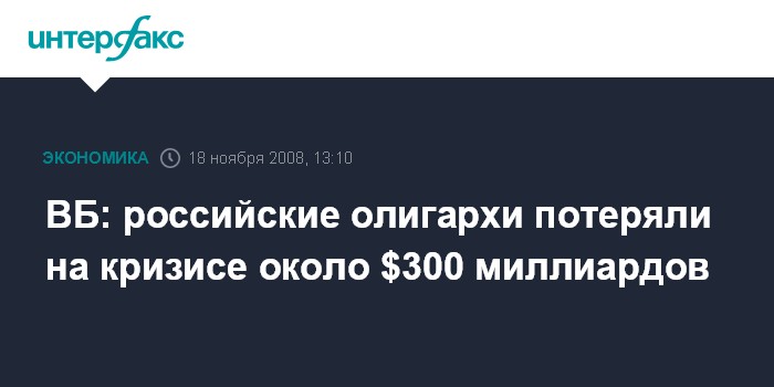 ВБ: российские олигархи потеряли на кризисе около $300 миллиардов