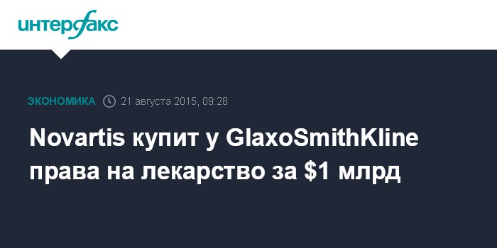 Novartis купит у GlaxoSmithKline права на лекарство за $1 млрд