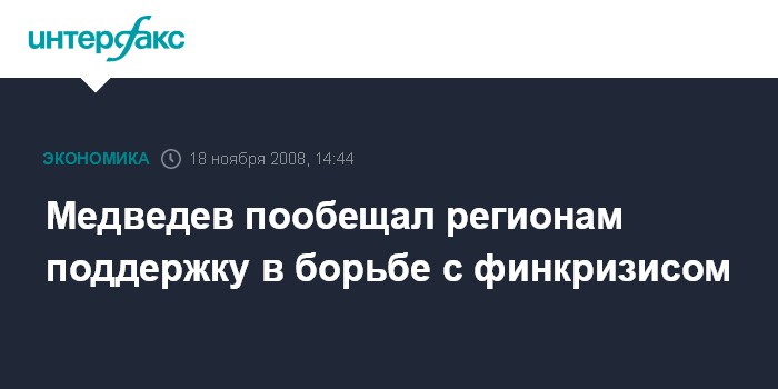 Москва. 18 ноября. INTERFAX.RU - Президент РФ Дмитрий Медведев пообещал регионам поддержку, в том числе финансовую, по борьбе с последствиями мирового финансового кризиса.