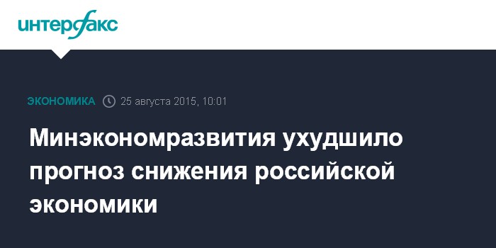 Москва. 25 августа. INTERFAX.RU – Минэкономразвития в новом прогнозе ухудшило ожидания по снижению ВВП РФ в 2015 году с 2,8% до 3,3%, сказал министр экономического развития Алексей Улюкаев журналистам во вторник в Куала-Лумпуре.
