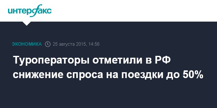 Москва. 25 августа. INTERFAX.RU - Российский туристический бизнес наблюдает снижение спроса на 50% на фоне роста курса валют, сообщила "Интерфаксу" пресс-секретарь Российского союза туриндустрии (РСТ) Ирина Тюрина.
