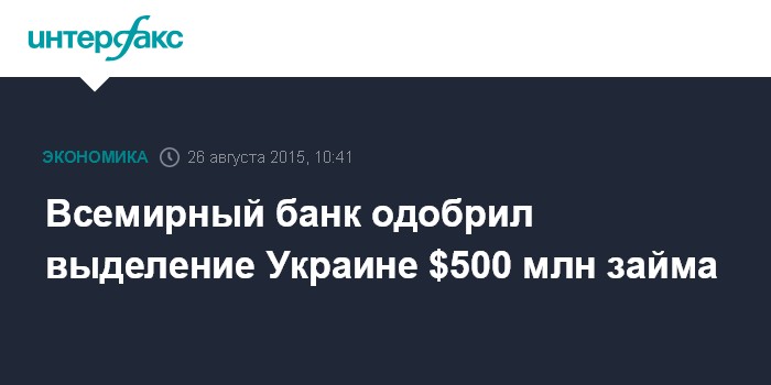 Москва. 26 августа. INTERFAX.RU – Совет директоров Всемирного банка на заседании 25 августа одобрил выделение Украине второго программного займа на политику развития (Development Policy Loan, DPL) в объеме $500 млн, говорится в сообщении на сайте ВБ.