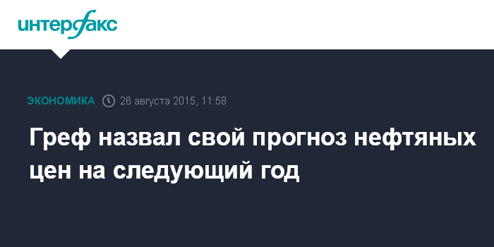 Москва. 26 августа. INTERFAX.RU – Цена на нефть в следующем году может быть в диапазоне $50-60 за баррель, считает глава Сбербанка Герман Греф.