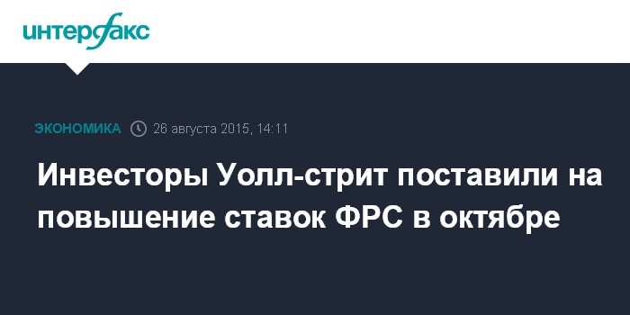 Инвесторы Уолл-стрит поставили на повышение ставок ФРС в октябре