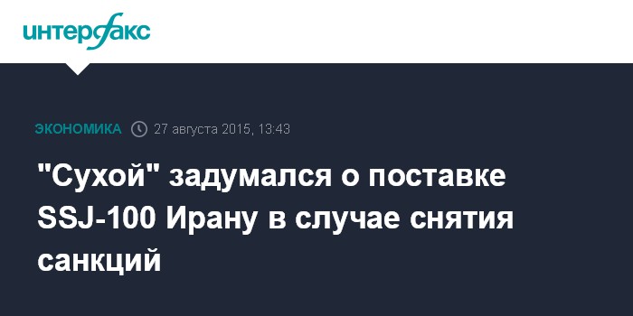 "Сухой" задумался о поставке SSJ-100 Ирану в случае снятия санкций