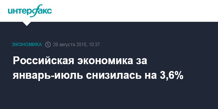 Москва. 28 августа. INTERFAX.RU – ВВП России за январь-июль 2015 году снизился на 3,6%, говорится в опубликованном в пятницу мониторинге Минэкономразвития.