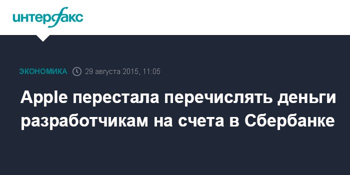 Москва. 29 августа. INTERFAX.RU - Apple отказалась перечислять выплаты российским разработчикам приложений для операционных систем OS X и iOS на счета в Сбербанке. Об этом пишет сегодня газета "Ведомости". Информацию изданию подтвердили несколько разработчиков, заявив, что уже заметили недопоступление денег.