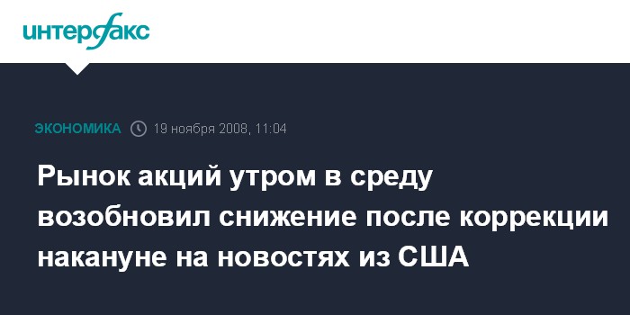 Рынок акций утром в среду возобновил снижение после коррекции накануне на новостях из США