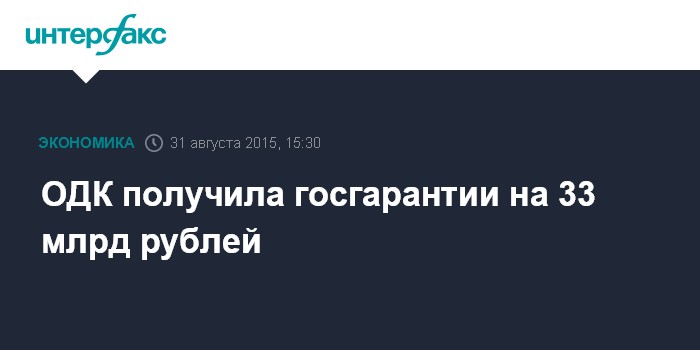 Москва. 31 августа. INTERFAX.RU – Председатель правительства Дмитрий Медведев сообщил о выделении "Объединенной двигателестроительной корпорации" (ОДК) государственных гарантий на сумму свыше 33 млрд рублей.