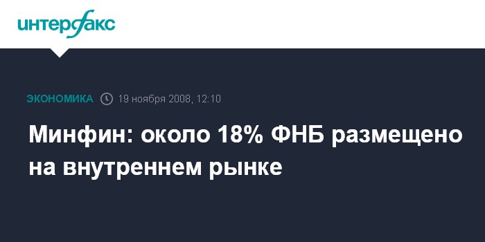 Москва. 19 ноября. INTERFAX.RU - Около 18% объема Фонда национального благосостояния (ФНБ) уже перечислено в ВЭБ и размещено на внутреннем рынке РФ.