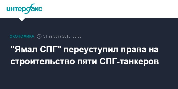 Москва. 31 августа. INTERFAX.RU - ОАО "Ямал СПГ" в августе 2015 года переуступил права на строительство СПГ-танкеров ледового класса, ранее заказанных у южно-корейской DSME, сообщает компания в своем полугодовом отчете по GAAP.