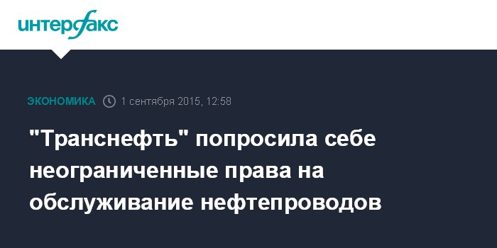 Москва. 1 сентября. INTERFAX.RU – "Транснефть" обратилась к руководству страны с инициативой совершенствования нормативной правовой базы, регулирующей отношения в сфере трубопроводного транспорта, сообщил "Интерфаксу" источник в одном из профильных ведомств.