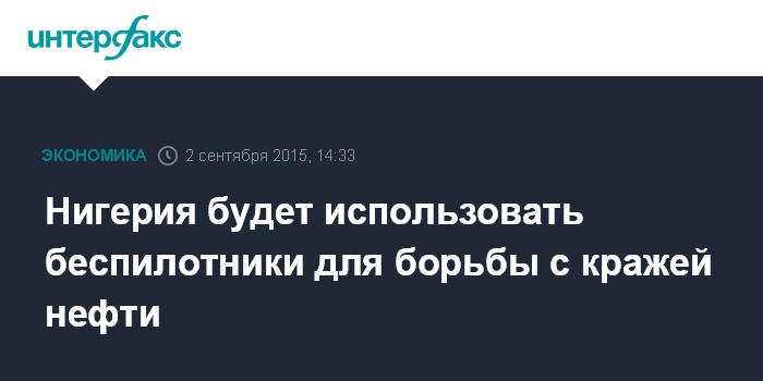 Москва. 2 сентября. INTERFAX.RU - Нигерийская нефтяная госкорпорация Nigerian National Petroleum Corp. (NNPC) разместит беспилотники для отслеживания движения судов в прибрежных водах, чтобы предотвращать кражу нефти на шельфе, сообщает агентство Bloomberg.