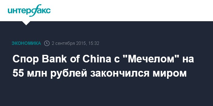 Спор Bank of China с "Мечелом" на 55 млн рублей закончился миром
