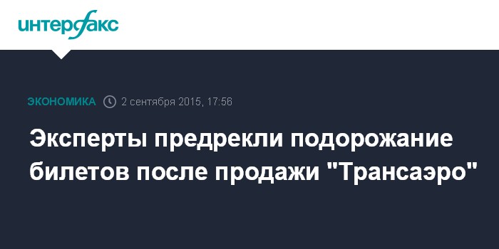 Москва. 2 сентября. INTERFAX.RU - Продажа авиакомпании "Трансаэро" "Аэрофлоту" может привести к удорожанию билетов на многих направлениях, считают эксперты туристического рынка.
