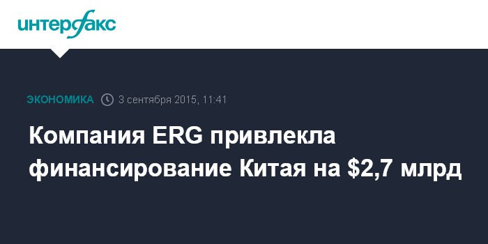 Компания ERG привлекла финансирование Китая на $2,7 млрд