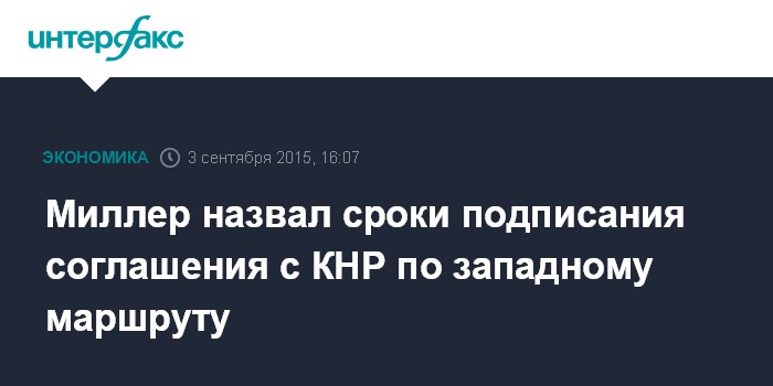 Миллер назвал сроки подписания соглашения с КНР по западному маршруту