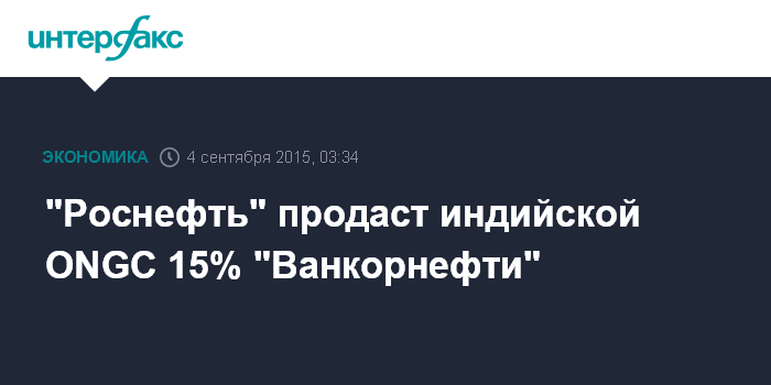 Москва. 4 сентября. INTERFAX.RU - "НК "Роснефть" подписало с индийской ONGC договор о продаже 15% АО "Ванкорнефть", передал корреспондент "Интерфакса" с церемонии подписания.