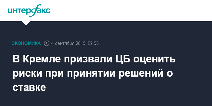 В Кремле призвали ЦБ оценить риски при принятии решений о ставке