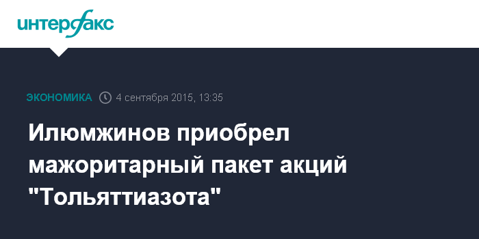 Москва. 4 сентября. INTERFAX.RU - Президент ФИДЕ Кирсан Илюмжинов подтвердил, что стал владельцем мажоритарного пакета акций ОАО "Тольяттиазот".