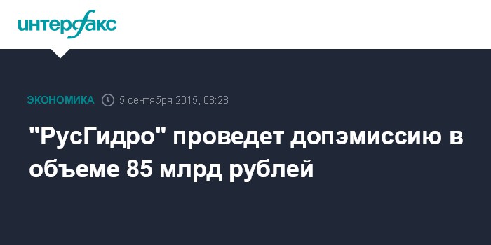 "РусГидро" проведет допэмиссию в объеме 85 млрд рублей