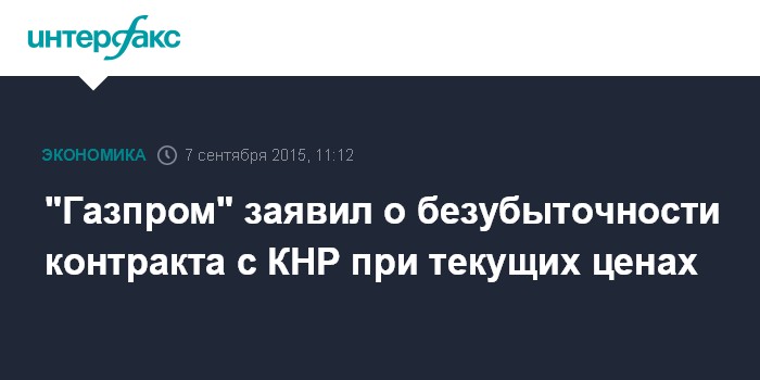 Бурмистрова также заявила, что контракт на поставку газа в КНР по восточному маршруту по газопроводу "Сила Сибири" не является убыточным при нынешних ценах на нефть. "Мы же фиксировали цену, которая будет исходной точкой, когда подписывали контракт. Безусловно, кривая будет вести нас вниз. Но существует зафиксированная цена. Более того, говорить об убыточности контракта, подписанного на 30 лет в стране, где потребление будет расти, мне кажется преждевременным. Мы не знаем, в момент поставок какая будет цена. Но на сегодняшний день эта цена не убыточна", - заверила глава "Газпром экспорта".