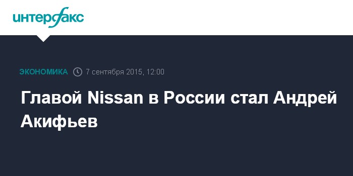Москва. 7 сентября. INTERFAX.RU – Пост управляющего директора Nissan в России занял Андрей Акифьев, сообщает японский автопроизводитель.