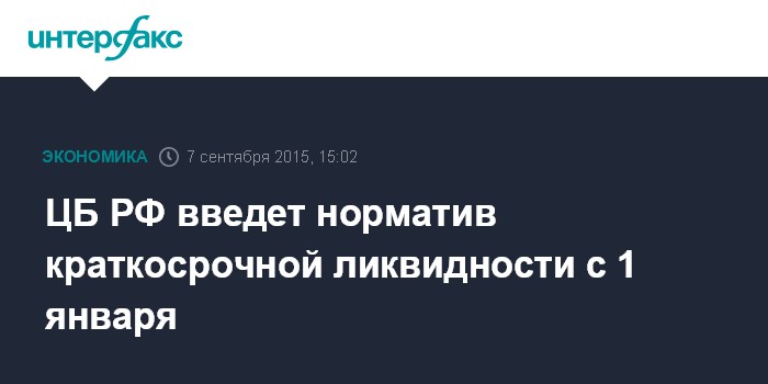 Банк России издаст нормативный акт, устанавливающий порядок расчета норматива краткосрочной ликвидности, в срок до 1 декабря 2015 года.