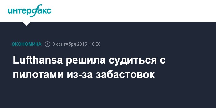 Москва. 8 сентября. INTERFAX.RU – Авиакомпания Deutsche Lufthansa подаст в суд на германский профсоюз летчиков гражданской авиации Vereinigung Cockpit, требуя возмещения убытков в результате забастовки, проведенной пилотами перевозчика в апреле 2014 года, пишет MarketWatch.