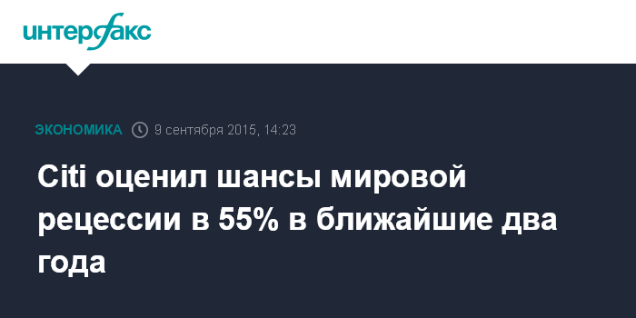Москва. 9 сентября. INTERFAX.RU – Шансы на то, что мировая экономика испытает рецессию в той или иной форме в ближайшие два года, составляют 55%, полагают аналитики банка Citigroup Inc.