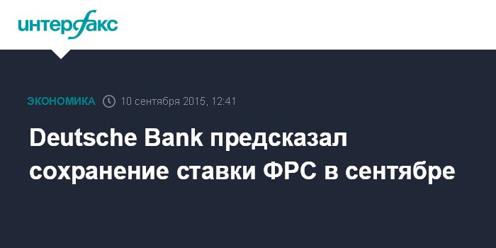 Москва. 10 сентября. INTERFAX.RU – Федеральная резервная система США вряд ли увеличит процентные ставки на ближайшем заседании, которое пройдет 16-17 сентября, прогнозирует экономист Deutsche Bank Джозеф Лаворна.