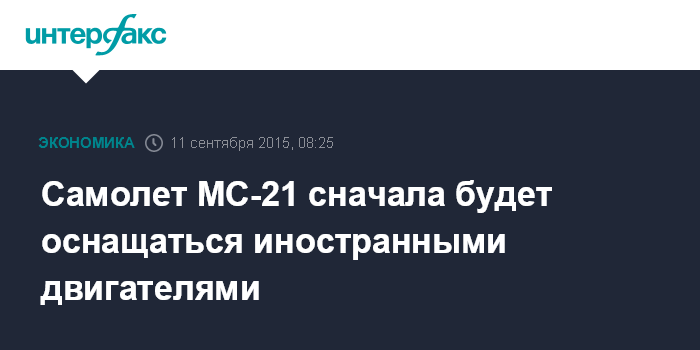 "К сожалению, мы не успеваем подготовить свой двигатель к первому самолету (МС-21 - ИФ), поэтому первые самолеты будут на иностранных двигателях, но начиная с 2018 года, я надеюсь, что уже пойдут серийно ПД-14", - сказал Чемезов.