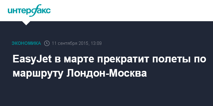 Москва. 11 сентября. INTERFAX.RU – Британский лоукостер EasyJet с 21 марта 2016 года прекращает выполнение рейсов по маршруту Лондон-Москва, говорится в сообщении авиаперевозчика.